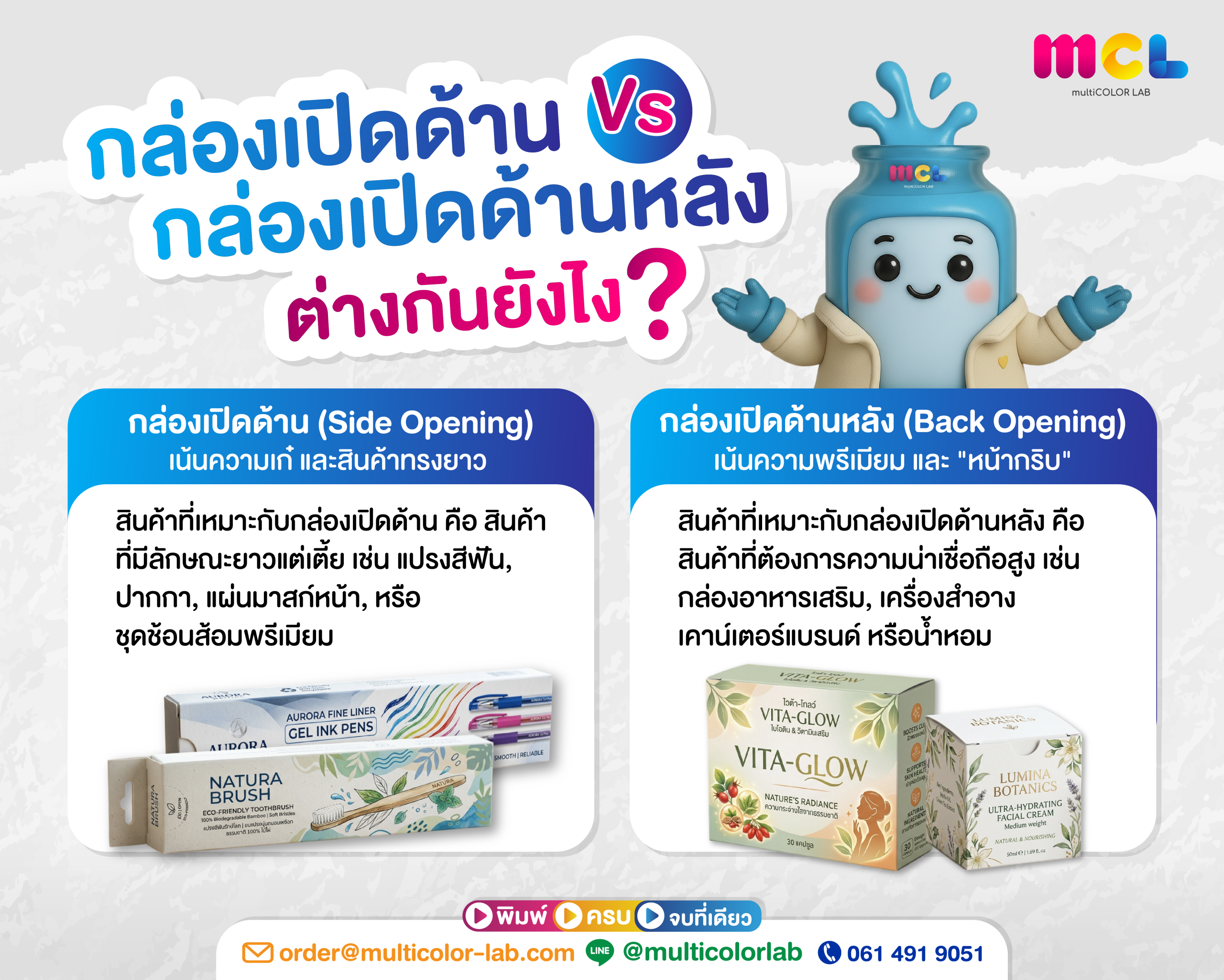 กล่องเปิดด้าน vs กล่องเปิดด้านหลัง ต่างกันยังไง? เลือกแบบไหนให้ “แบรนด์ปัง” และ “ใช้งานเวิร์ก” ดูเพิ่มเติม
